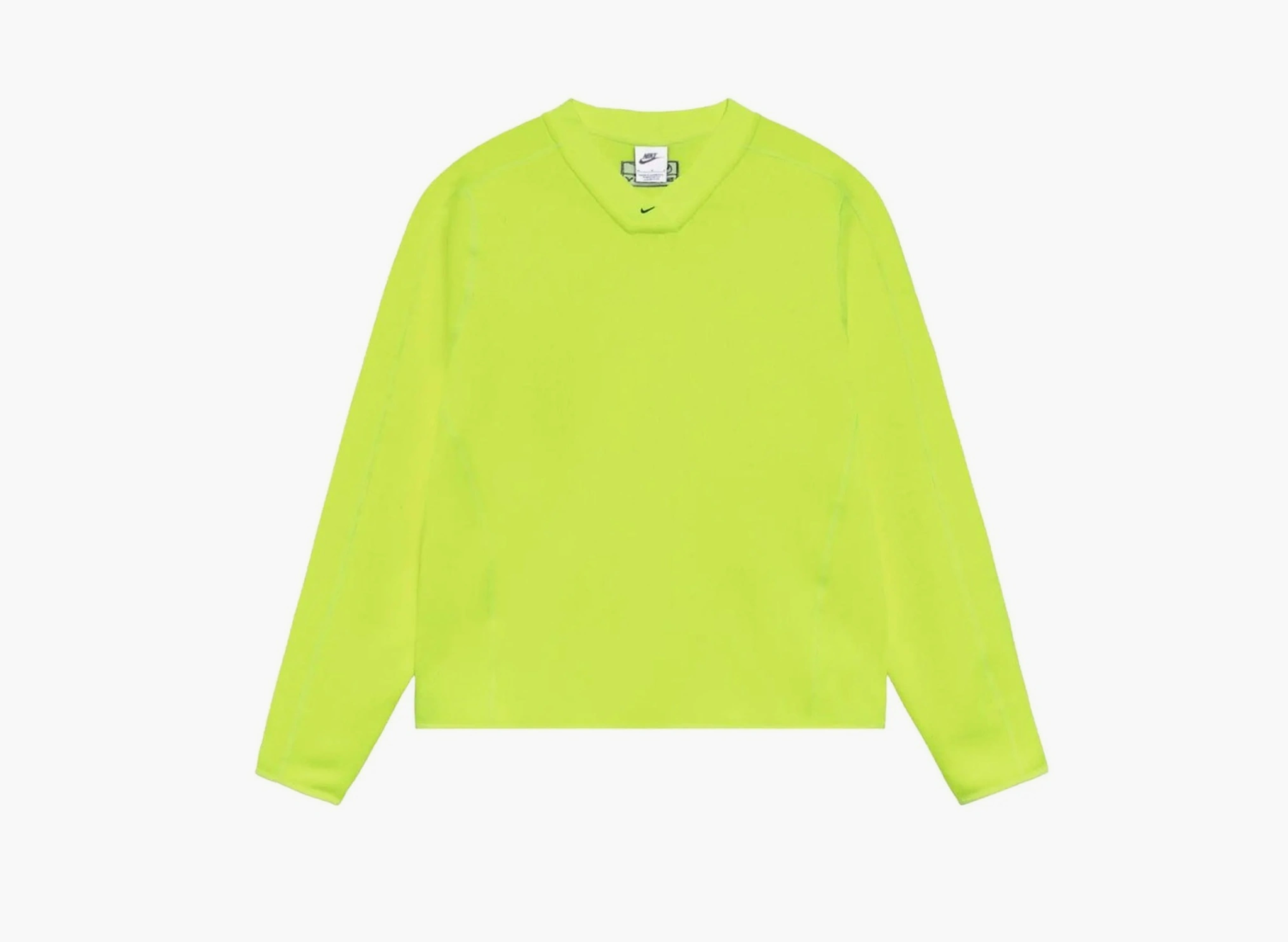 Лонгслив Stussy x Nike Fleece Thermal в насыщенном зелёном цвете - модель выполнена из мягкого, утеплённого материала с помощью технологии термического флиса, которая обеспечивает отличную теплоизоляцию без лишнего объема. Прямой крой и минималистичный дизайн делают этот предмет универсальным — его легко сочетать с разными образами и использовать в холодную погоду.