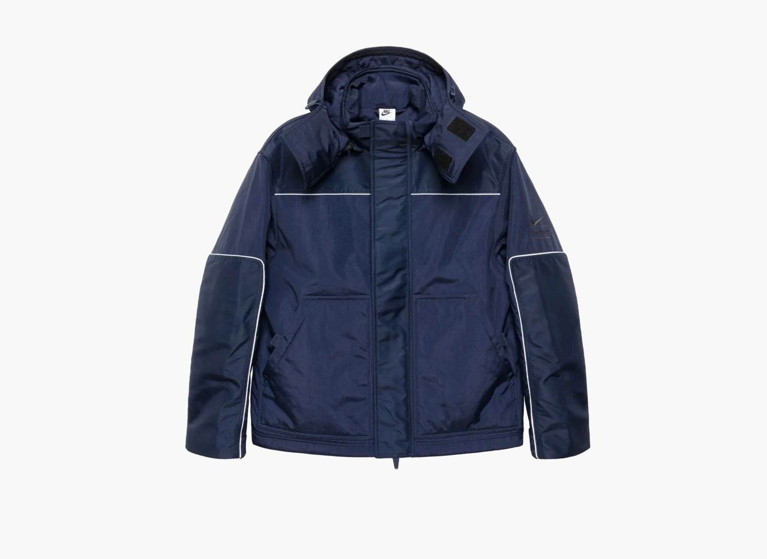 Stussy x Nike Primaloft Utility Jacket Obsidian — это синяя утеплённая куртка, объединяющая стильные решения и передовые технологии. Этот футуристичный дизайн сочетает минимализм и функциональность, отлично подходя для холодных дней, когда важна надёжность и комфорт. Основой модели является высокотехнологичный утеплитель Primaloft, который обеспечивает отличную теплоизоляцию при минимальном весе. Материал не пропускает холод и сохраняет тепло внутри, а внешняя ткань устойчива к влаге и ветру, что делает эту куртку пригодной для городской среды и уличных прогулок. Удобный крой и продуманные детали позволяют свободно двигаться и сохранять свежий вид после многократной носки. Дизайн выполнен в лаконичном стиле с чистыми линиями и минимальным количеством декоративных элементов. Эта модель отлично сочетает технологичные материалы с современным эстетическим подходом, что делает её уникальной среди других курток в своей категории. В итоге — это практичный и износостойкий выбор для тех, кто ценит качество и современный стиль.