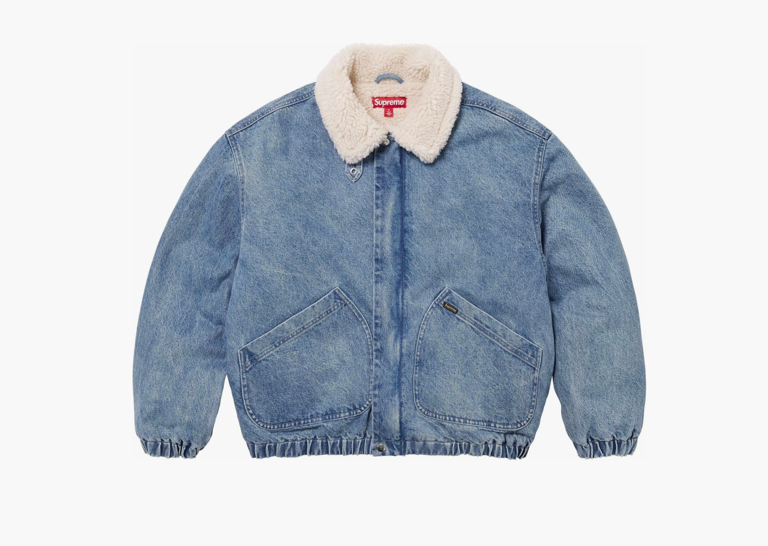 Supreme Faux Shearling Lined Bomber Jacket Denim голубого цвета — это современная интерпретация классического бомбера, выполненная из прочного денима с искусственной шерстяной отделкой внутри. Она сочетает в себе утонченную простоту и надежность, создавая комфортное ощущение и стильный внешний вид. Обратим внимание на мягкую подкладку из искусственного меха, которая добавляет тепла и уюта без чрезмерной громоздкости. Корпус куртки выполнен из качественного денима, устойчивого к износу, а дизайн — с классической посадкой и вниманием к деталям, что делает ее актуальной вне времени. Технология обработки материалов позволяет сохранить форму и цвет даже после многократных стирок, а фиксаторы и молнии — надежными и долговечными. Эта модель идеально подходит для тех, кто ищет устойчивый стиль на каждый день, а также ценит качество материалов и продуманность конструкции. Вдохновленная ретро-трендами и современными тенденциями, она остается актуальной в любой ситуации: от городской суеты до прогулок на природе.