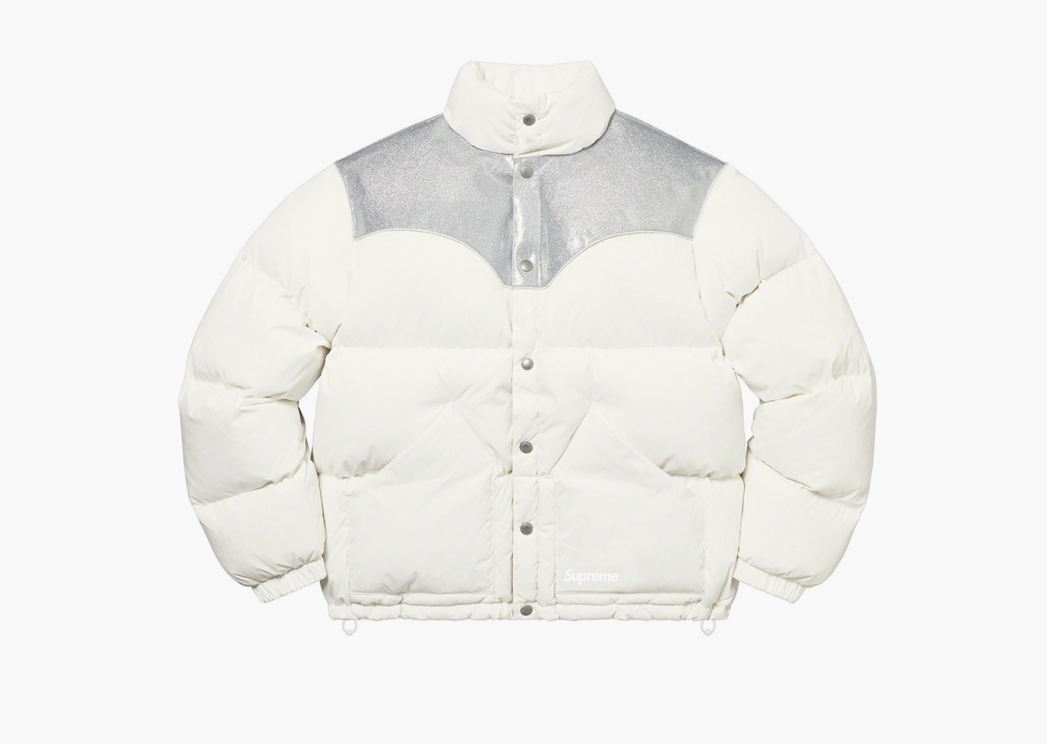 Supreme Glitter Yoke Down Puffer Jacket White — это стильная белая пуховая куртка с эффектным глянцевым «пухом» и жемчужным блеском на верхней части. Ее дизайн сочетает классический силуэт с современными деталями: яркий глиттер добавляет текстурности и немного дерзости, делая эту модель заметной в городской суете. Основная особенность — использование высококачественного гусиного пуха с повышенной теплотворной способностью, что гарантирует умеренный вес и отличные теплоизоляционные свойства. Надежная водоотталкивающая мембрана и прочный внешний материал позволяют куртке противостоять легкому снегопаду и ветру, не теряя презентабельного вида. Благодаря наполнителю и технологичному крою эта модель отлично удерживает тепло, не создавая ощущение тяжести, и при этом выглядит аккуратно и современно. Эта пуховка отлично вписывается в тренды urban-стритстайла и выделяется своей текстурой и качеством исполнения. Supreme в этой модели подчеркнула баланс между эстетикой и функциональностью, создав универсальный и долговечный предмет гардероба. Внутри — мягкая подкладка, которая ощущается уютной и приятной на ощупь, а продуманные детали делают ношение удобным даже в холодную погоду.