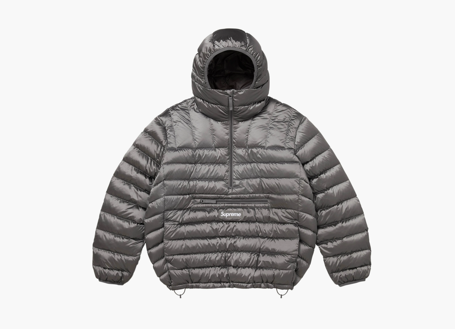 Supreme Micro Down Half Zip Hooded Pullover в серебристом цвете. Этот лёгкий пуховик с молнией до половины и капюшоном — отличный выбор для прохладных дней, когда важно сохранить тепло без лишней громоздкости. Модель выполнена из высококачественного нейлона с водоотталкивающей обработкой, которая помогает защититься от капризов погоды. Внутри — тонкий, но эффективный утеплитель, известный своей лёгкостью и отличными теплоизоляционными свойствами. Дизайн строго сдержанный и удобный — компактный крой, регулируемый капюшон и надежная молния создают функциональную комбинацию. Использование современных технологий утепления и современных материалов делает этот пуховик не только стильным, но и долговечным. Он быстро сохнет, легко сворачивается и занимает минимум места, что ценно при активном образе жизни или путешествиях. Этот верхний слой отлично сочетает в себе лёгкость и тепло, а серебряный цвет придает ему свежий, современный вид. В условиях городской суеты или на природных тропах — Supreme Micro Down Pullover показывает свои преимущества в быстром тепловом эффекте и удобстве носки. Его уникальность в использовании новейших утеплительных технологий и качественных материалов, которые обеспечивают долгий срок службы и комфорт.