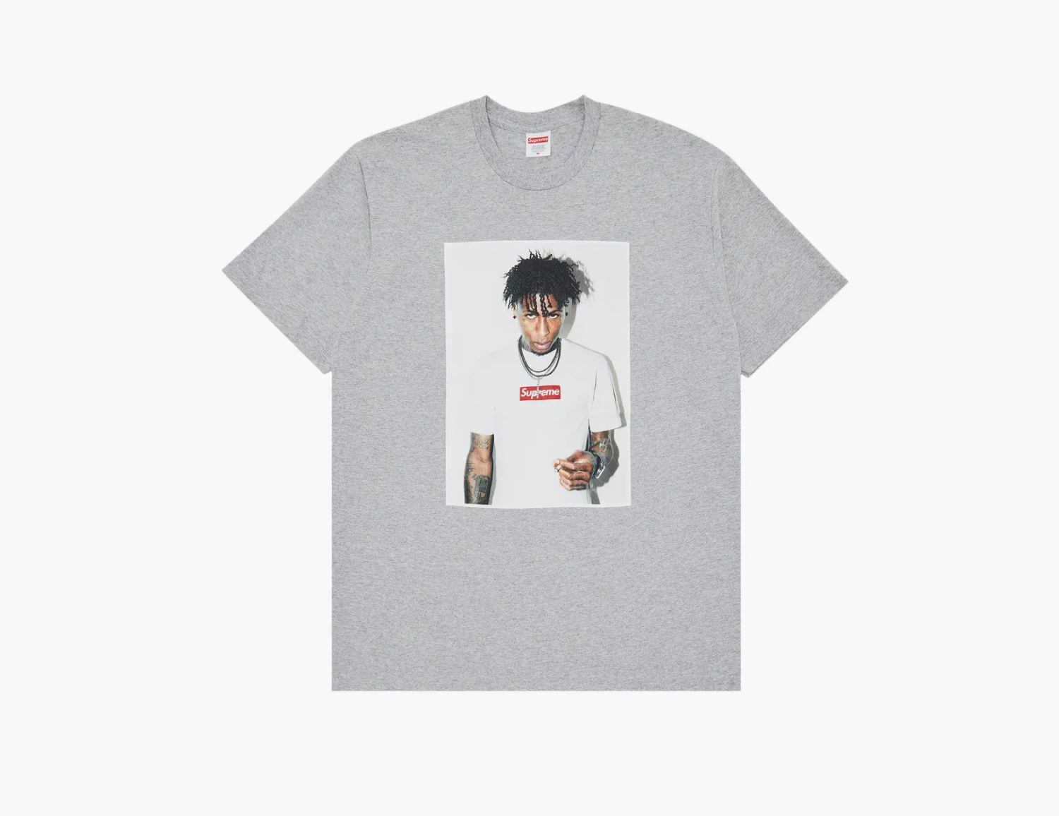 Supreme NBA Youngboy Tee Heather Grey — это не просто футболка, а настоящий хит для тех, кто следит за уличной модой. Выполненная в благородном сером оттенке, она станет идеальной базой для ваших повседневных образов.