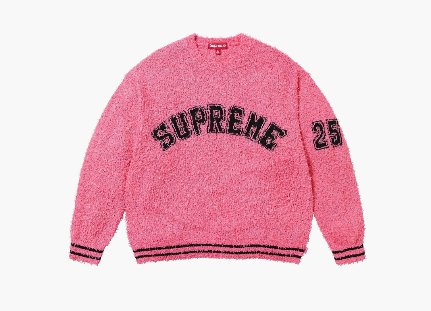 Supreme Textured Arc Sweater в розовом цвете — это не просто свитер, а продуманная вещь для тех, кто ценит баланс между уличным стилем и комфортной повседневностью.