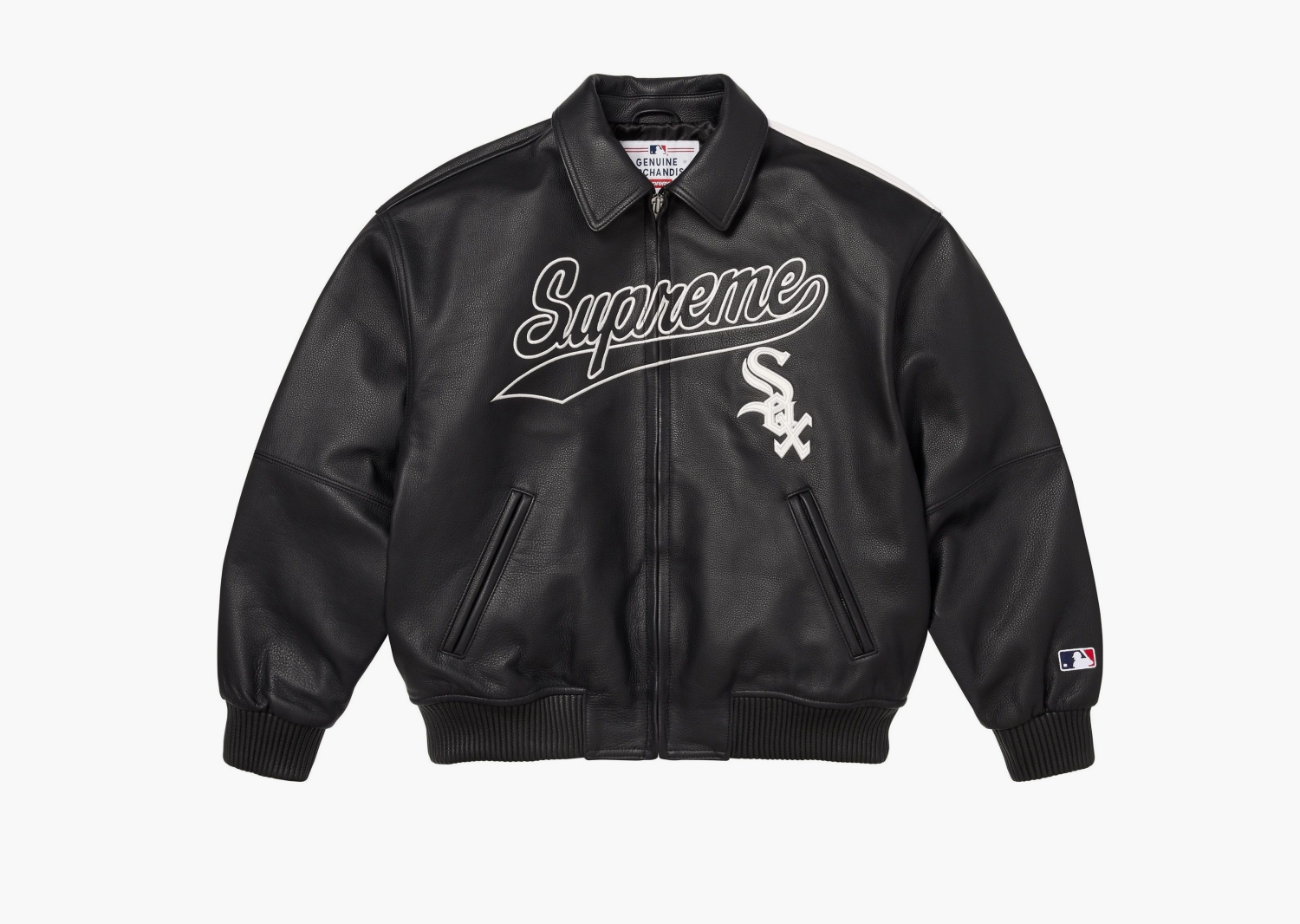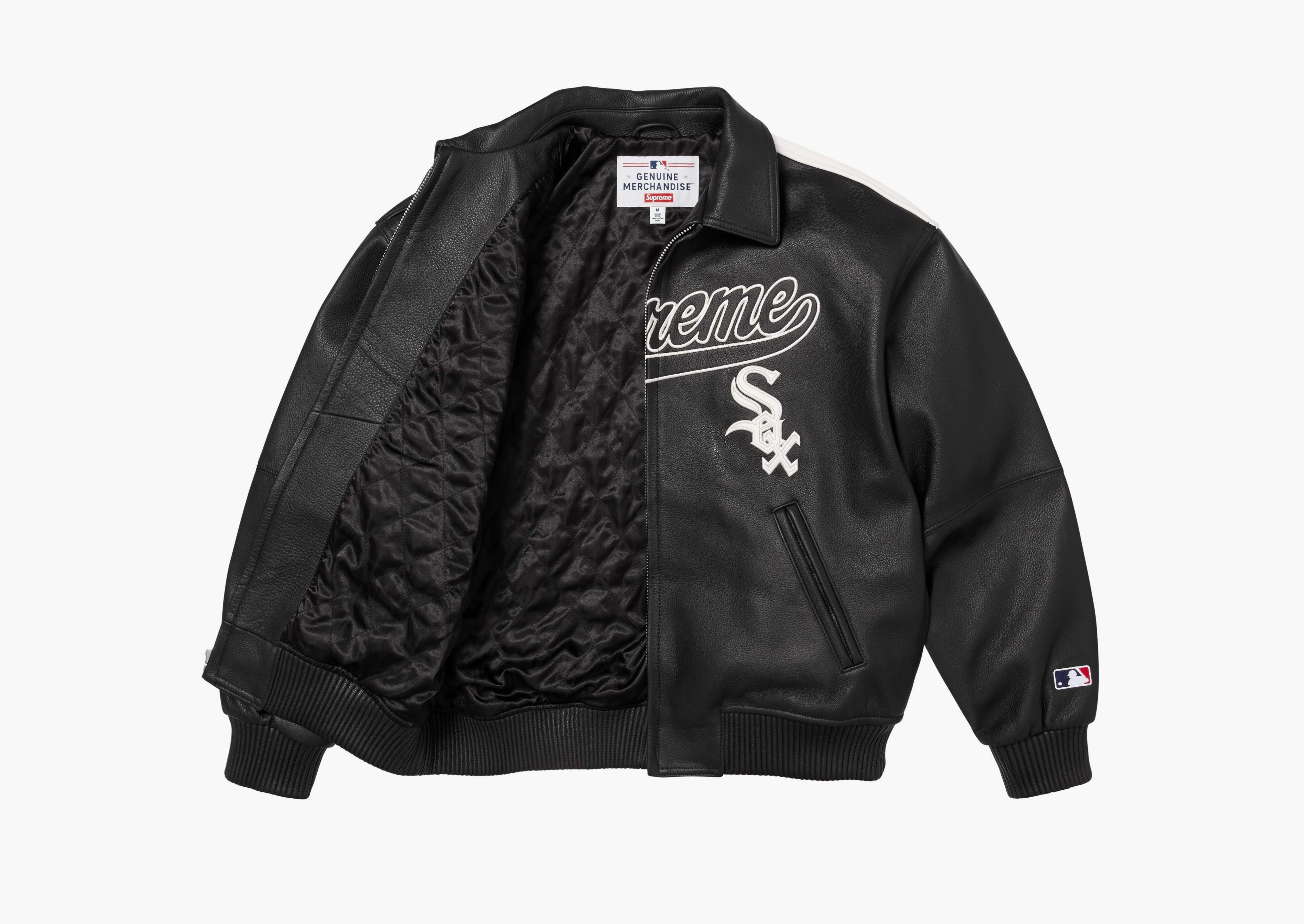 Supreme x Chicago White Sox Leather Varsity Jacket Black — это черная кожаная куртка, созданная в коллаборации брендов Supreme и Chicago White Sox. Материал выполнен из высококачественной натуральной кожи, которая со временем становится только мягче. В дизайне сочетаются классические элементы varsity, строгий крой и фирменные детали обеих марок. Ключевые особенности — это прочная кожа с отличной износостойкостью, аккуратные швы и детали из металла, а также характерные нашивки и логотипы, расположенные на передней части и рукавах. Внутри находится мягкая подклада, которая обеспечивает комфорт и тепло даже в прохладную погоду. Отличительная черта модели — лаконичность с богатой историей футбольных клубов и уличной культуры, что превращает её в универсальный элемент гардероба для ценителей стиля. Идеально подходит для тех, кто ценит качество материалов и уникальные коллаборации. Эта куртка — не просто одежда, а частичка культурной истории и трендового дизайна, которая выделяется в коллекции благодаря своему уникальному сочетанию уличной моды и спортивных корней.