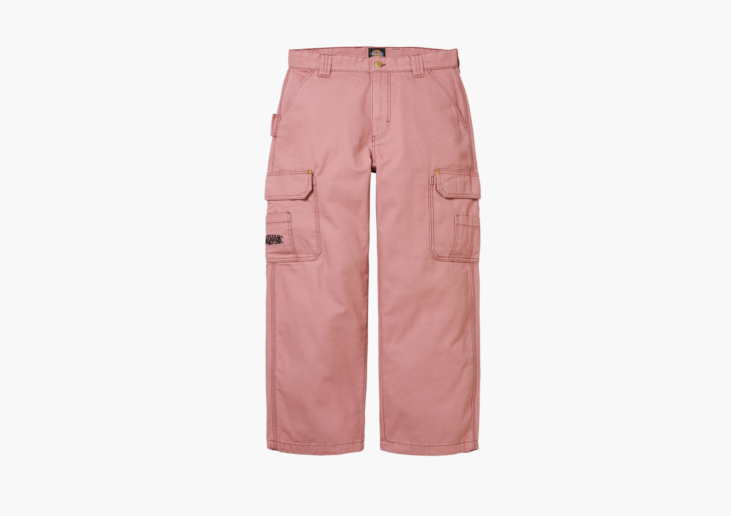 Supreme × Dickies Flannel Lined Cargo Pants в розовом цвете — это смелый синтез утилитарного дизайна и яркого цветового решения. Коллаборация двух легендарных брендов даёт о себе знать: Dickies отвечает за проверенную временем конструкцию и качество пошива, а Supreme добавляет дерзкий акцент в виде нестандартного для карго цвета. Эти брюки — не просто одежда, а высказывание на языке уличной моды. Главная техническая фишка — флисовая подкладка. Она превращает карго в вариант для прохладной погоды: сохраняет тепло, но не создаёт лишнего объёма. Внешняя ткань — плотный хлопок, который: Крой остался верным традициям Dickies — свободный, но не мешковатый. Розовый цвет здесь - это насыщенный, уверенный оттенок, который заметно выделяет модель из ряда привычных карго. В контексте современных трендов розовый в уличной моде давно перестал быть «необычным» цветом — сегодня это такой же базовый вариант, как чёрный или хаки, просто с более выразительным характером. Если вы ищете брюки, которые одинаково хорошо подойдут для города, вылазок на природу или работы, где важен комфорт, но при этом хотите выглядеть небанально — это именно тот вариант.