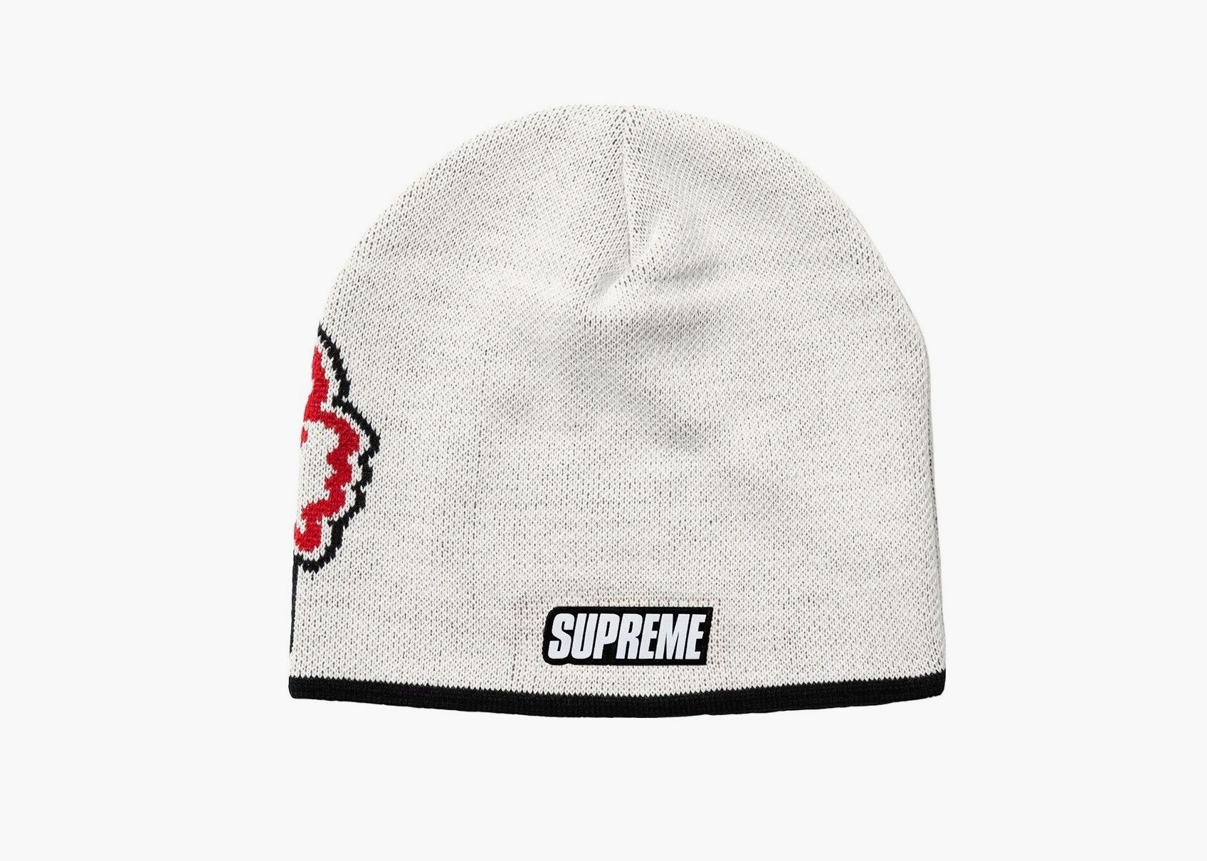 Supreme × Fox Racing Beanie White — белая вязаная шапка от коллаборации двух культовых брендов.
