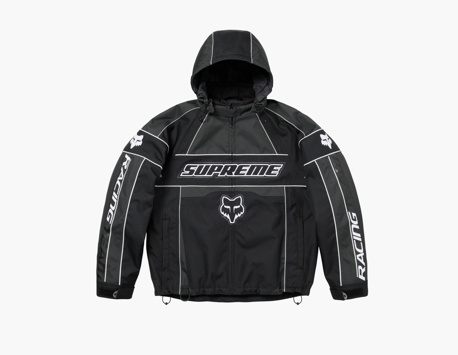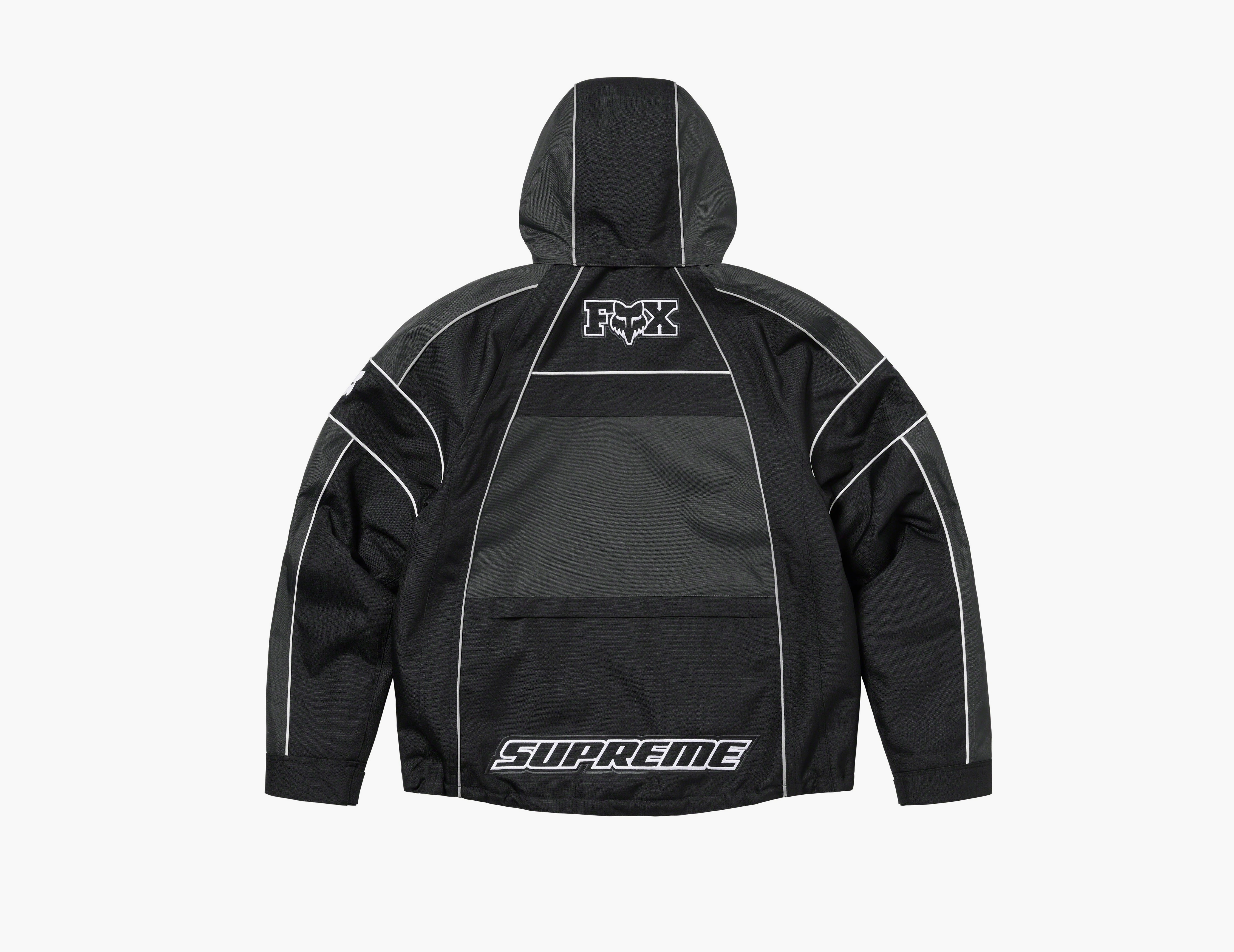 Supreme x Fox Racing Jacket Black — стильную чёрную модель, созданную в коллаборации двух легендарных брендов. Эта куртка отличается классическим кроем с элементами уличного дизайна и техническими деталями, которые делают её одновременно комфортной и практичной. В основе лежит прочный нейлоновый материал, устойчивый к влаге и износу, а внутри расположена тёплая синтетическая подкладка. Такие материалы обеспечивают нужную защиту от ветра и холода, сохраняя при этом легкость и свободу движений. В дизайне присутствуют узнаваемые логотипы и фирменные детали Fox Racing, что делает эту модель узнаваемой и актуальной для современных трендов. Уникальность данной куртки — в сочетании спортивного стиля с уличной эстетикой, сочетающееся с высоким стандартом качества. Это не просто вещь для повседневной носки, а полноценный элемент гардероба, который постоянно держит руку на пульсе модных инноваций.
