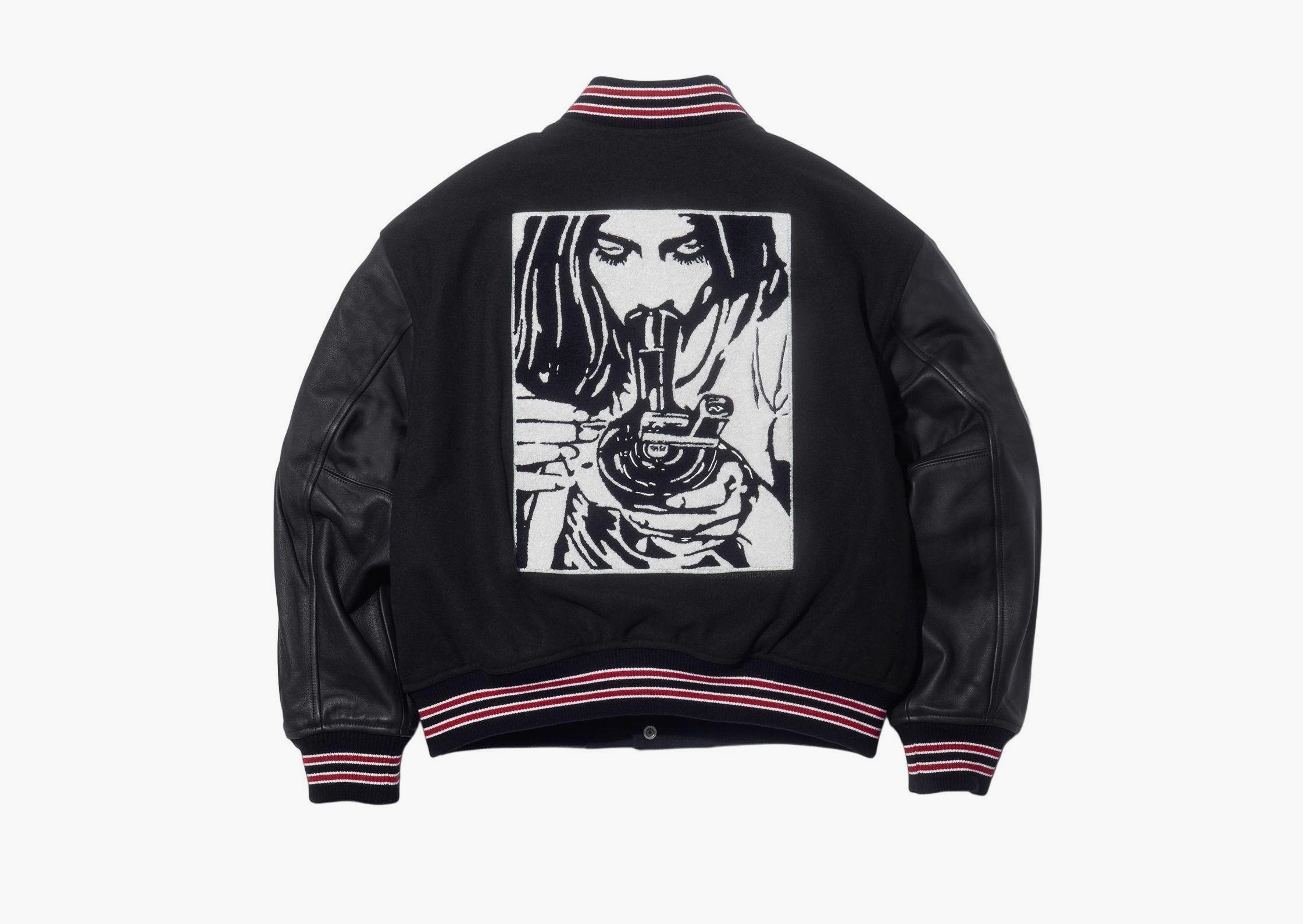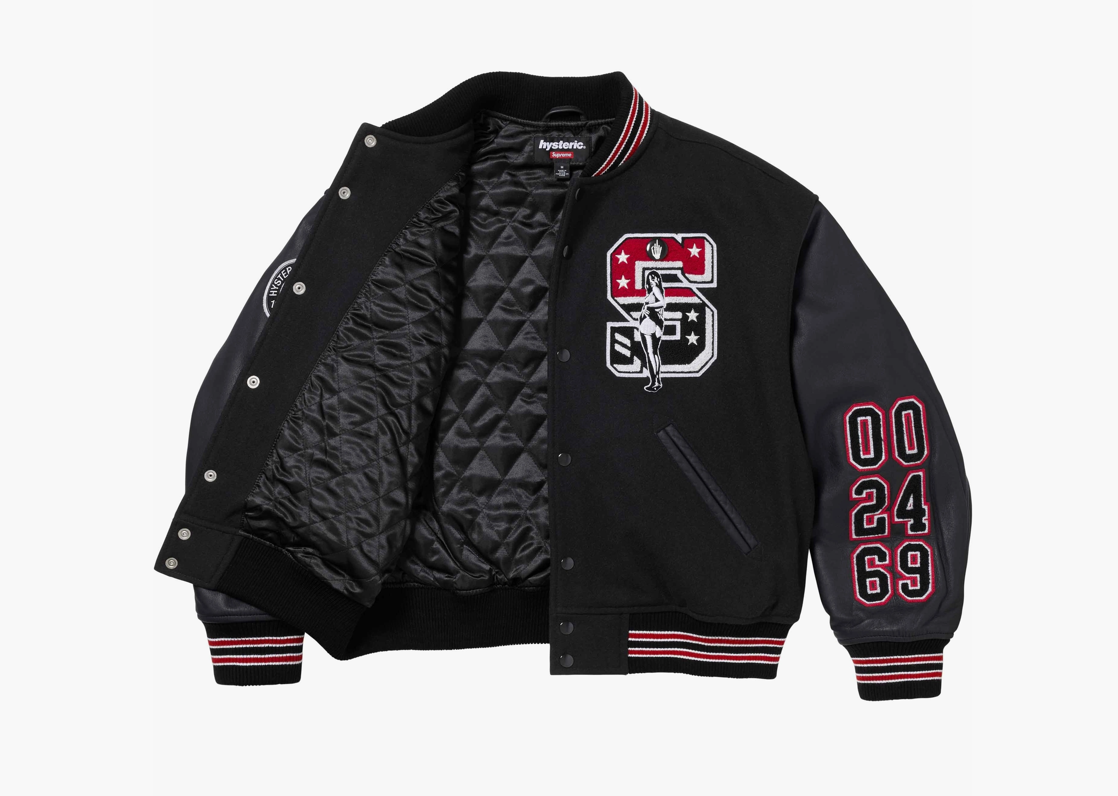 Supreme x Hysteric Glamour Varsity Jacket Black — это стильная черная куртка, объединяющая узнаваемые элементы двух легендарных брендов. Главная особенность — яркий дизайн с контрастными нашивками и эмблемами, характерными для обеих марок, дополненный классическим кроем бомбер. Материал смеси высококачественного хлопка и нейлона обеспечивает прочность и комфорт при носке, а мягкая подкладка — надежную теплоизоляцию. В этой модели использованы современные технологии обработки, которые делают куртку устойчивой к износу и сохраняют насыщенность цвета даже после многократных стирок. Внимание к деталям и качественная посадка позволяют создавать аккуратный и продуманный силуэт, при этом не жертвуя комфортом. Надежная фурнитура и крупные аппликации придают изделию особый характер без излишней вычурности. Уникальность этой куртки заключается в слиянии уличной культуры и эстетыки японской моды, что делает ее по-настоящему редким приобретением. Такой дизайн не только отображает тенденции, но и говорит о вкусе владельца, ценящего искусное сочетание классики и креатива.