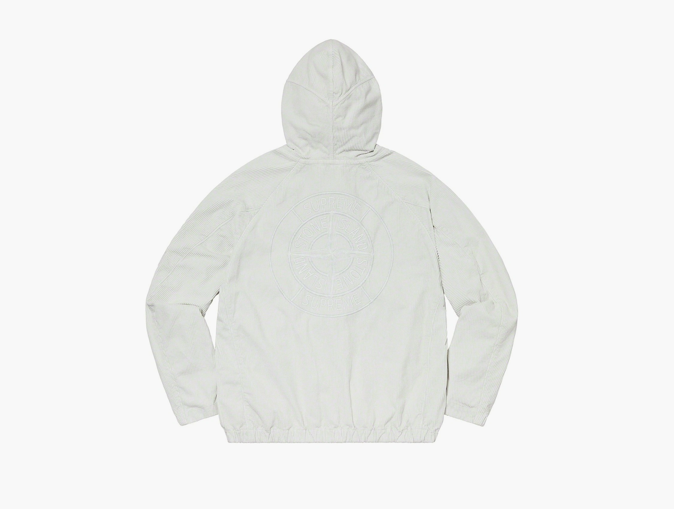 Supreme x Stone Island Corduroy Jacket White — это не просто куртка, а совместный релиз двух культовых брендов, который точно привлечёт внимание ценителей уличной моды. Белый цвет придаёт модели лаконичность и универсальность, позволяя легко вписывать её в разные образы.