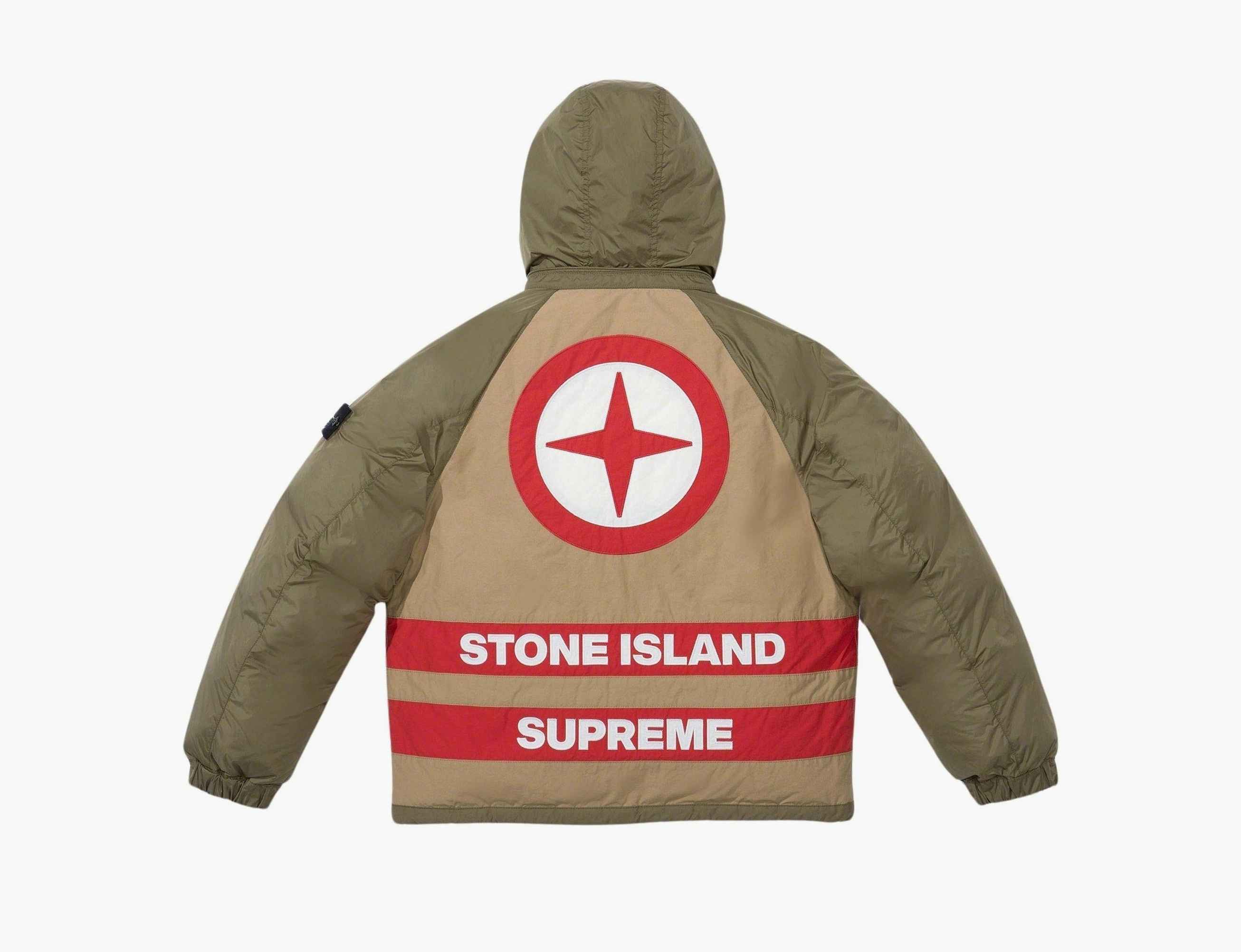 Supreme x Stone Island Reversible Down Puffer Jacket в оливковом цвете — это настоящая находка для ценителей премиальной уличной моды. Коллаборация двух культовых брендов создала нечто особенное: двустороннюю пуховую куртку, которая меняет свой облик простым движением руки.