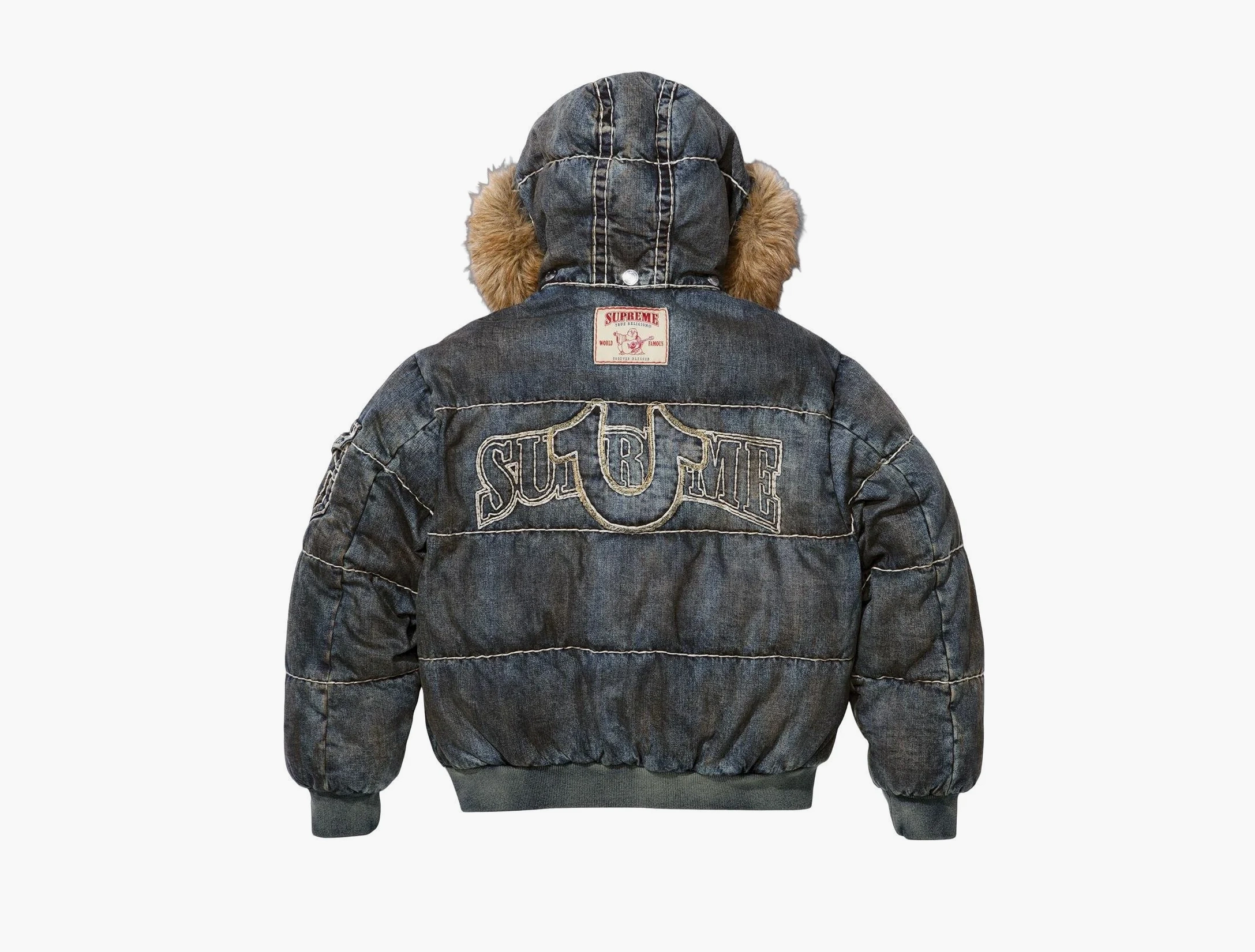 Пуховая куртка Supreme x True Religion Puffer Jacket в цвете Dirty Indigo — насыщенный вязкий синий, выполненная из плотного, но легкого материала с водоотталкивающей обработкой. Она сочетает в себе классическую форму пуховика с яркими фирменными акцентами, включая логотипы и вышивки True Religion и Supreme, что подчеркивает коллаборацию двух знаменитых брендов уличной моды. Конструкция куртки включает синтетический утеплитель высокого качества, который отлично сохраняет тепло даже в самые холодные дни. Внешняя ткань выполнена из прочного материала, устойчивого к ветру и небольшой влаге, при этом она легкая и не создает ощущения скованности. Внутренние швы укреплены, а молнии и застежки — надежные и долговечные, что гарантирует безупречную работу в течение длительного времени. Дизайн продуман до мелочей: объемный крой обеспечивает свободу движения, а минималистичные детали делают образ свежим и сдержанным. Эта модель отлично подходит для города и активного отдыха, сочетая функциональность и современный стиль. Особенность куртки — ограниченная серия производства, что делает ее редким и ценным предметом гардероба для коллекционеров и ценителей премиальной уличной моды.