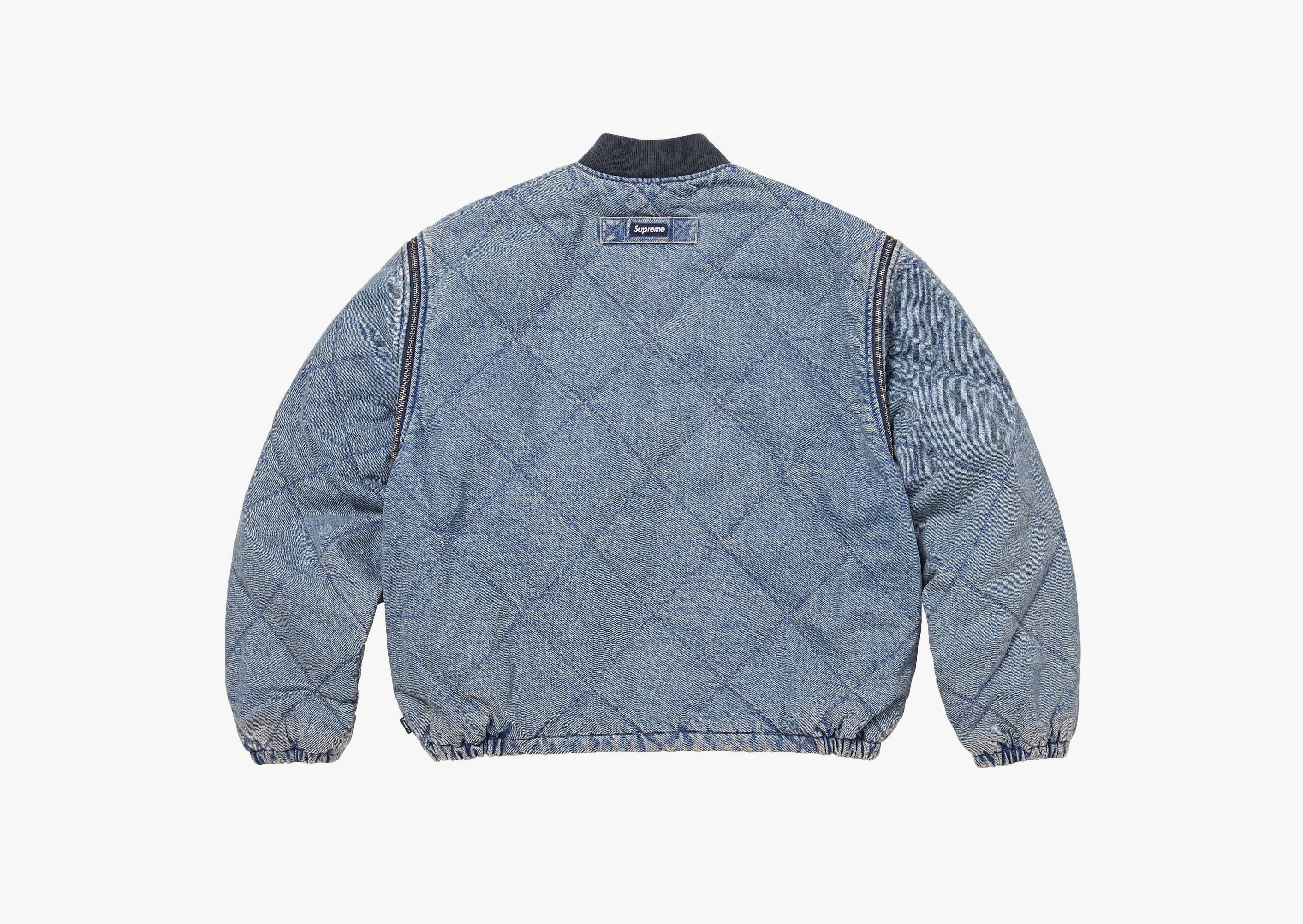 Supreme Zip-Off Sleeve Quilted Bomber Jacket Denim в голубом цвете — это стильный и многослойный бомбер с оригинальной функцией съемных рукавов. Сделан из качественного денима, покрытого мягкой утеплённой подкладкой, которая держит тепло в прохладную погоду. Благодаря особенностям дизайна, во время холодных дней она обеспечивает тепло, а при необходимости быстро превращается в жилет, просто отстегивая рукава. Основная изюминка — это фирменные замки и отделка Supreme, сделанные так, чтобы выдерживать постоянные нагрузки и сохранять внешний вид даже после долгой носки. Технология изготовления обеспечивает плотное прилегание и прочность, а водоотталкивающая обработка помогает сохранять внешний вид в дождливую погоду. Бомбер отлично подходит для городских условий, хорошо сочетается с разными стилями и демонстрирует актуальный тренд на утилитарность и функциональность. Этот жакет нравится тем, кто ищет не просто стильный предмет гардероба, а действительно практичный и уникальный. Благодаря комбинации классического денима с инновационными решениями Supreme, такая куртка занимает особое место среди современных уличных моделей — она не только комфортна, но и выделяется своей недешёвой подлинностью.