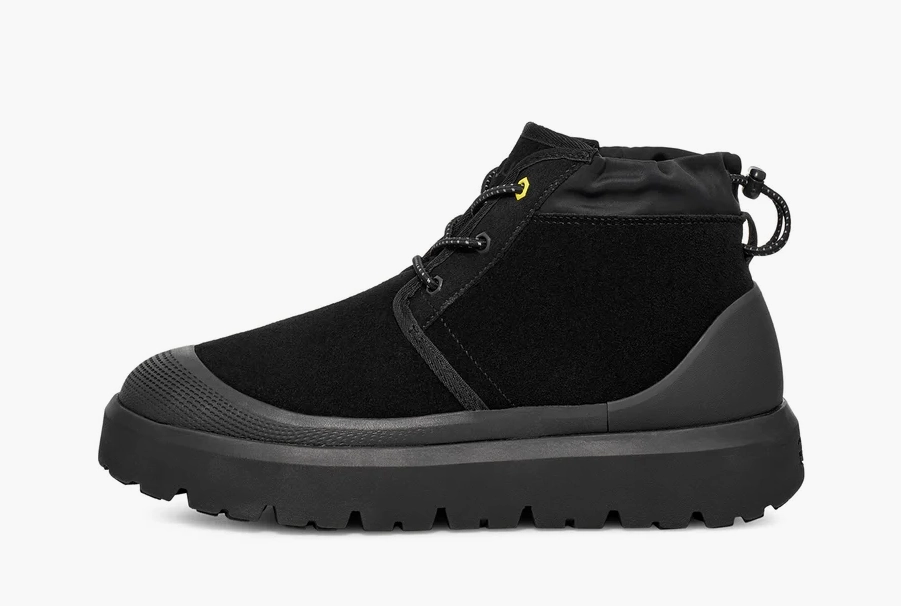 UGG Neumel Weather Hybrid Black — это черные ботинки, выполненные в классическом стиле, сочетающем практичность и минимализм. Они идеально подойдут для тех, кто ищет обувь, сочетающую надежную защиту и актуальный внешний вид. Конструкция модели предусматривает использование водоотталкивающих материалов: верх из мягкой, прочной замши и технического текстиля, которые эффективно противостоят влаге и грязи. Внутри — утеплитель, сохраняющий тепло даже в самые холодные дни. Подошва из резины обеспечивает хорошее сцепление на мокрых и скользких поверхностях, что делает эти ботинки универсальными для городской зимы и межсезонья. Особенность модели — это сочетание классического уличного стиля с современными технологиями защиты от непогоды. Она хорошо сидит на ноге, легко надевается и снимается, при этом обеспечивает комфорт при длительной носке. Эта обувь создавалась для активных городских жителей, которые ценят качество и не хотят носить массивную, неудобную зимнюю обувь.