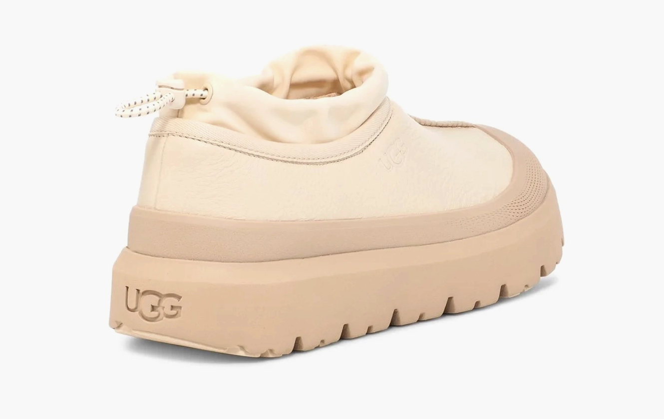 UGG Tasman Weather Hybrid Slipper Birch White Pepper — это угги кремового цвета, которые легко впишутся в повседневный гардероб. Данные угги — баланс между домашним уютом и городским стилем, ведь они отлично подходят как для отдыха, так и для прогулок. Основная идея — сочетание современных технологий и классических материалов. Верх сделан из водоотталкивающего текстиля и кожи, что обеспечивает легкую защиту от влаги и снега, а внутри спрятана мягкая шерстяная отделка, создающая ощущение теплоты и комфорта. Подошва — прочная и не скользкая, что важно при перемещениях по улицам и дома. Что выделяет эту модель — это их универсальность. Они не только оправдывают ожидания в холодную погоду, но и сохраняют стильный внешний вид благодаря простому, лаконичному дизайну. Хорошо продуманная техническая часть даёт уверенность в долговечности и практичности обуви, что особенно важно, если ищешь вещи, которые прослужат долго и не подведут.