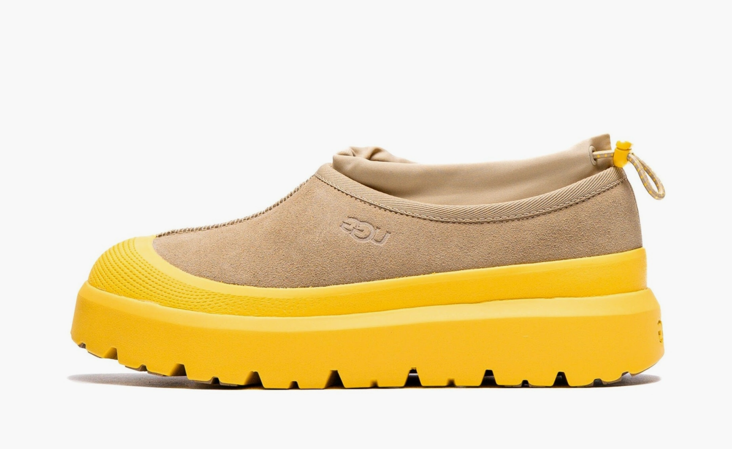 UGG Tasman Weather Hybrid Slipper в цвете Mustard Seed/Summer Wheat — бежевый. Эти угги выполнены в стильном, сдержанном дизайне и идеально подходят для тех, кто ценит комфорт и практичность. Модель отличается сочетанием современных технологий и качественных материалов. Внешний слой изготовлен из водоотталкивающего синтетического материала с утепленным внутренним слоем, что обеспечивает защиту от влаги и сохраняет тепло даже в холодную погоду. Внутри — мягкая шерстяная подкладка, дополненная легкой утеплительной прослойкой, которая удерживает тепло и не мешает дыханию кожи. Гибкая и прочная подошва из PVC с рифлением обеспечивает хорошее сцепление, делая обувь устойчивой даже на мокрой поверхности. Такая конструкция позволяет использовать эти угги не только дома, но и для легких прогулок на открытом воздухе в прохладную погоду. Удобство и износостойкость — главные преимущества этой модели, а классический дизайн отлично впишется в любую повседневную стилистику. Несмотря на простоту, модель выделяется качеством исполнения и сбалансированным сочетанием стиля и функциональности. Именно благодаря использованию современных влагозащитных и теплоизоляционных технологий, UGG Tasman Weather Hybrid Slipper позволяют чувствовать комфорт и уверенность в разных погодных условиях, что делает их уникальным решением для активных людей, ценящих качество и удобство.