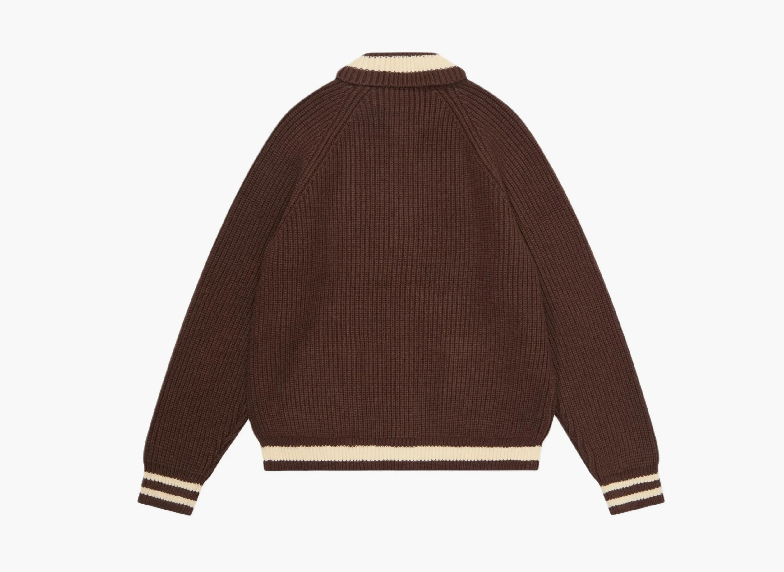 UNDEFEATED Knit Varsity Jacket в коричневом цвете. Эта куртка сочетает в себе классический спортивный дизайн и современные материалы, делая его универсальным предметом гардероба. Она выполнена из мягкого, но прочного вязаного материала, который отлично держит тепло и при этом остается легким. В моделировании использованы аккуратные рукава и элегантные вставки, что создает сбалансированный и привлекательный силуэт. Основное отличие этой куртки — качественная вязка с плотным плетением, которая обеспечивает долговечность и хорошую износостойкость. Традиционная расцветка и фирменный логотип добавляют элемент узнаваемости, при этом форма и отделка оставляют ощущение стильного минимализма. Посадка рассчитана на комфорт — рукава и воротник выполнены из эластичных материалов, что исключает дискомфорт при носке. Эта модель — результат сочетания уличной культуры и спортивного наследия. Бренд UNDEFEATED славится своей внимательностью к деталям и качеству материалов, а их вязаная varsity куртка — яркое тому подтверждение. Выдающаяся особенность — это сочетание спортивных традиций с городским стилем, что делает ее уникальной в своем сегменте.